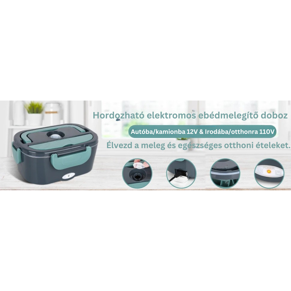 Hordozható elektromos ételmelegítő – 1,5L, 60W | otthonra és autóba (12V/24V + 110V/220V)