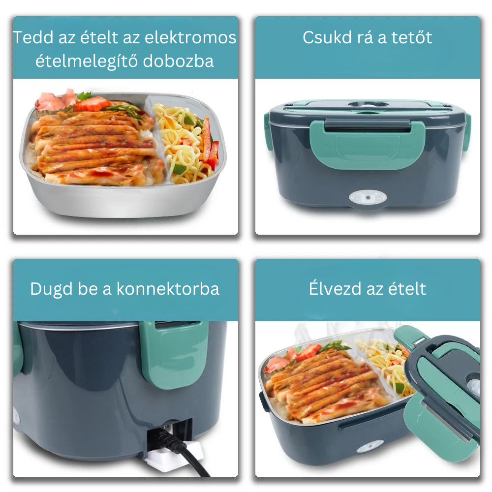 💧 Tipp: Ha az étel száraz vagy hosszabb ideje van a dobozban, adj hozzá egy kevés vizet a jobb melegítés érdekében.